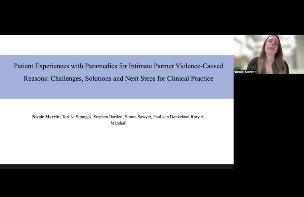 TITLE: Patient Experiences with Paramedics for Intimate Partner Violence-Caused Reasons: Challenges, Solutions and Next Steps for Clinical Practice Nicole Merritt1,2, Tori N. Stranges2, Stephen Bartlett3, Simon Sawyer4, Paul van Donkelaar2, Rory A. Marshall1,2